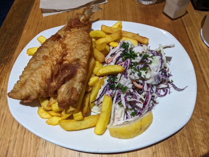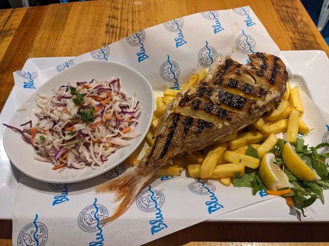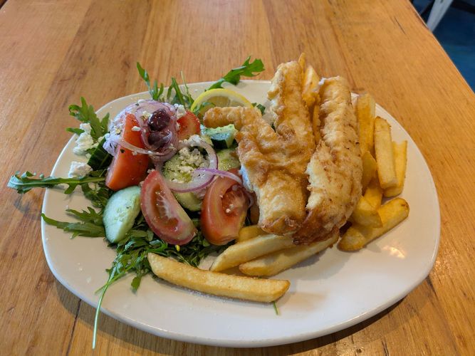 Ordered the fried flathead combo with greek salad and chips. Tastes alright but I think I'll go with the grilled option next time