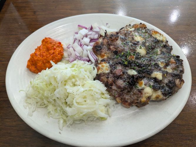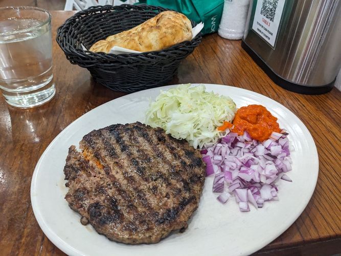 18. pljeskavica open plate. kackaval cheese & pancetta mix 350g