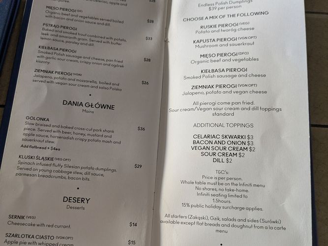 First time trying pierogi, tastes okay. Monday nights, you can only order the all you can eat option. Each plate comes with 8 pierogi.