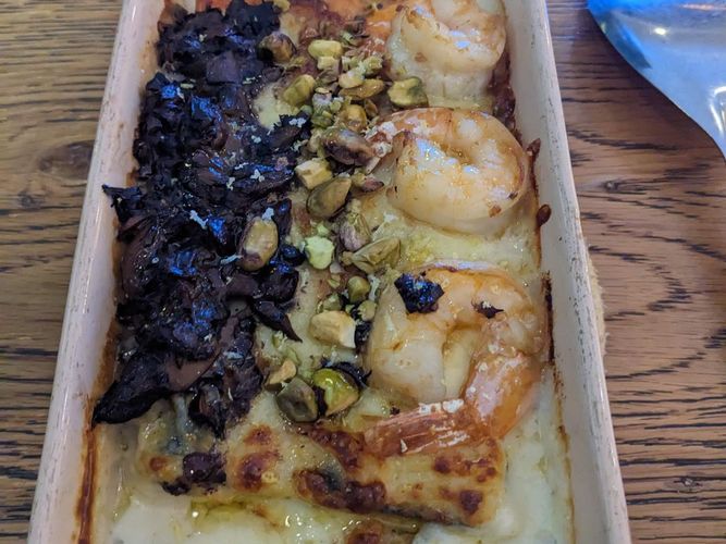 Ora king salmon, king prawns, squid ink, leek and porcini lasagna