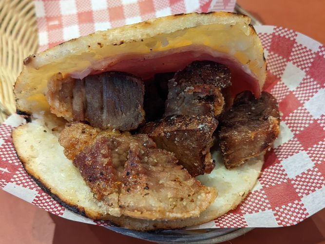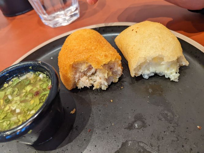 Empanadas were alright. Arepa was not good, Arepa was too hard, pork belly was hard, and odd combination