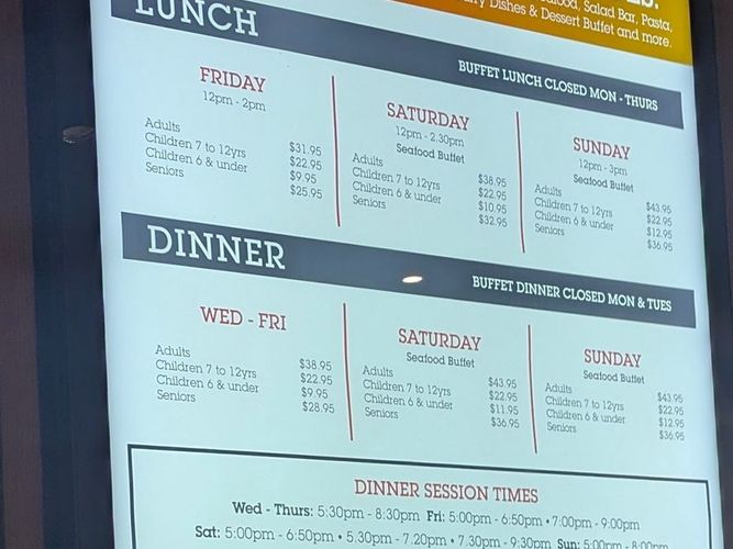 All you can eat buffet for $39, 2.5hr seating. Tastes alright. Standard selection of food.