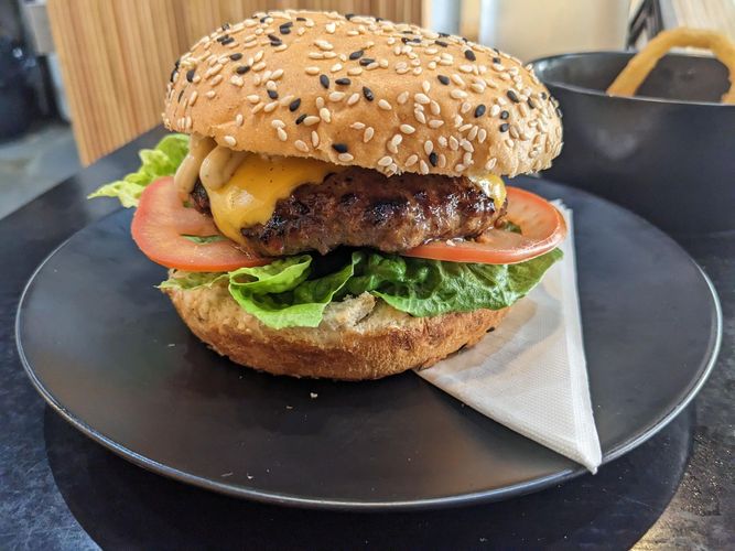 Tastes ok. I wish they used shredded lettuce and less dry seeded bun